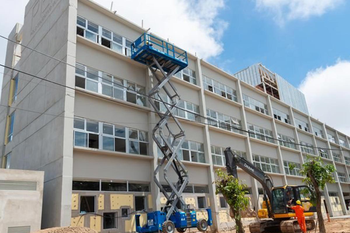 Obra civil de construcción en seco para la Escuela Nro 25 superando una intervención de mas de 6500 m2 de planta desarrollados entre Subsuelos, planta baja y 3 pisos superiores con aulas, bibliotecas, salones, pasillos, corredores, oficinas, áreas comunes y de servicio entre otras.